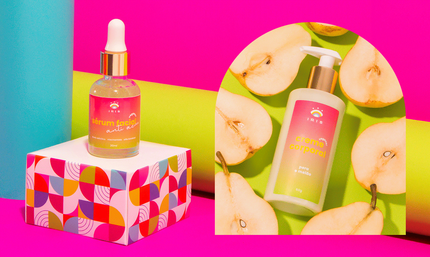 Iris is a cosmetics brand dedicated to skin and hair care. Its name comes from the word "rainbow" (arco-íris, in portuguese), the union of seven colors that, together, reveal something greater: visible light, white and universal, the light that illuminates. The word also evokes the iris of the eye, the colorful part that allows us to perceive and appreciate beauty.